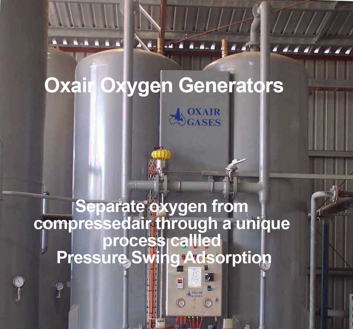Oxair designs and manufactures packaged oxygen Pressure Swing Adsorption (PSA) Systems including small to medium PSA systems for all types of industry including Medical Hospitals as well as large industrial Tonnage plants.