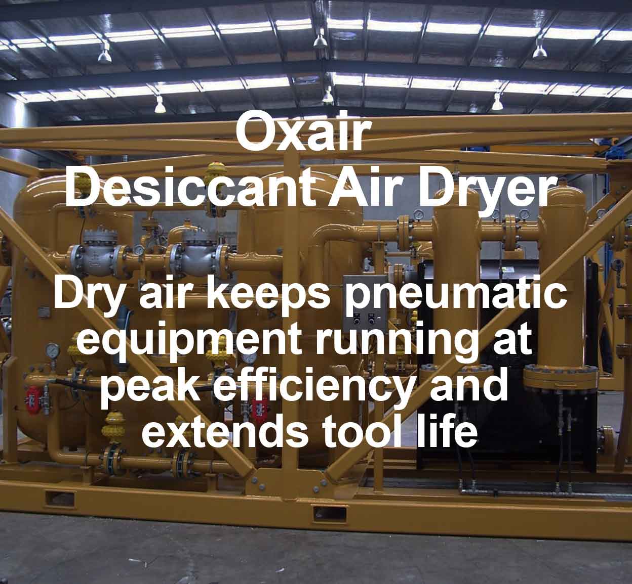 Oxair design and build Desiccant Heatless Dryers up to 10,000 scfm and 500 psi with lifting frames transport frames if required all with multi stage filtration packages.